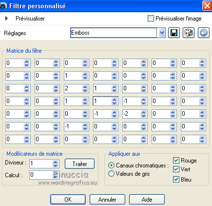Effets>Filtre personnalisé - sélectionner le preset Emboss et ok