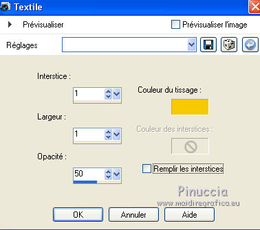 10. Effets>Effets de textures>Textile, couleur du tissage #f6c900