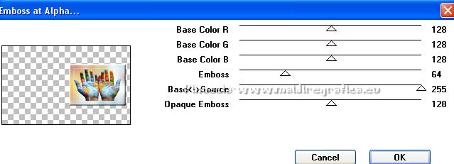 13. Effets>Modules Externes>Mura's Seamless - Emboss at Alpha, par défaut.