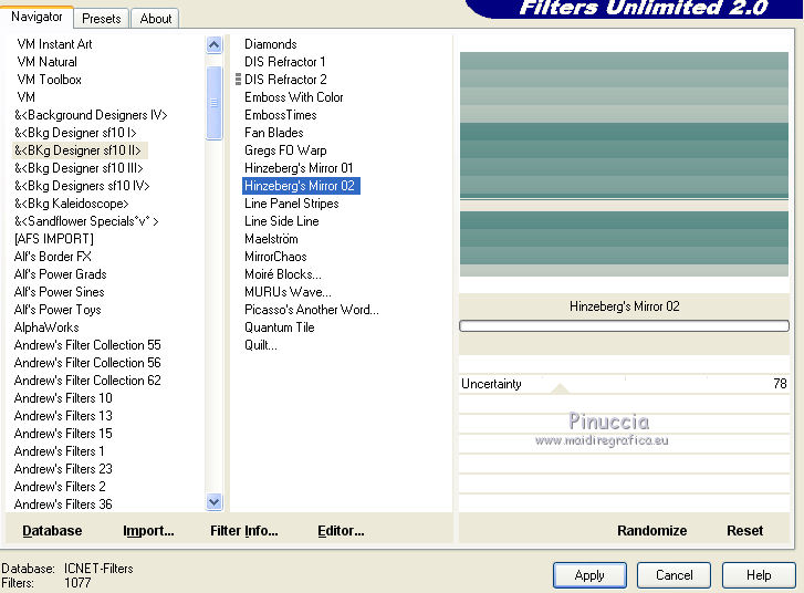 3. Effets>Modules Externes>Filters Unlimited 2.0 - &<Bkg Designer sf10II> - Hinzeberg's Mirror 02
