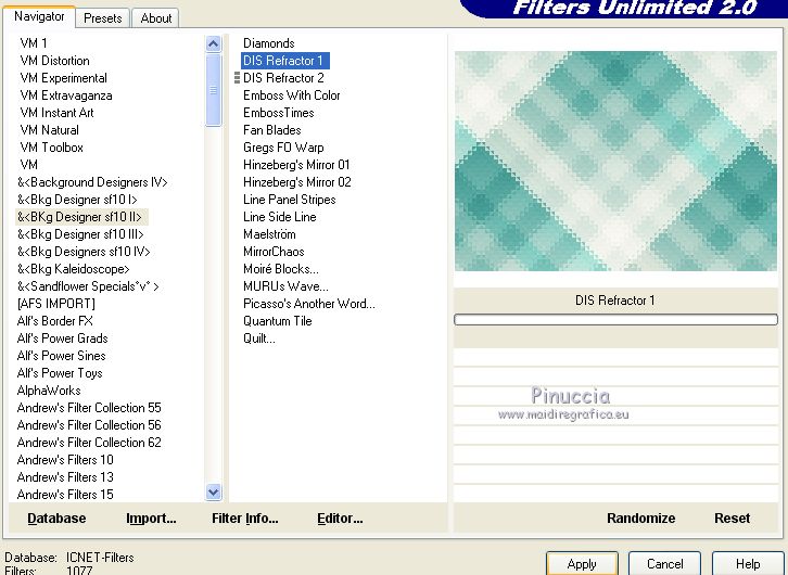 7. Effets>Modules Externes>Filters Unlimited 2.0 - &<Bkg Designer sf10II> - DIS Refractor 1.