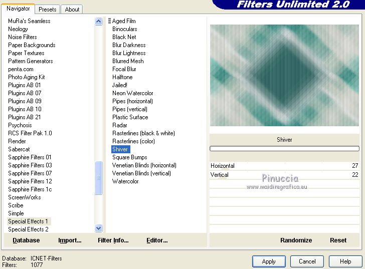 16. Effets>Modules Externes>Filters Unlimited 2.0 - Special Effects 1 - Shiver, par défaut.