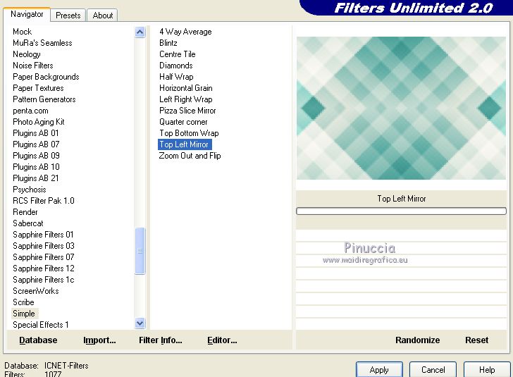 8. Effets>Modules Externes>Filters Unlimited 2.0 - Simple - Top Left Mirror.