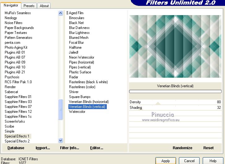 Effets>Modules Externes>Filters Unlimited 2.0 - Special Effects 1 - Venetian Blinds (Vertical), par défaut.