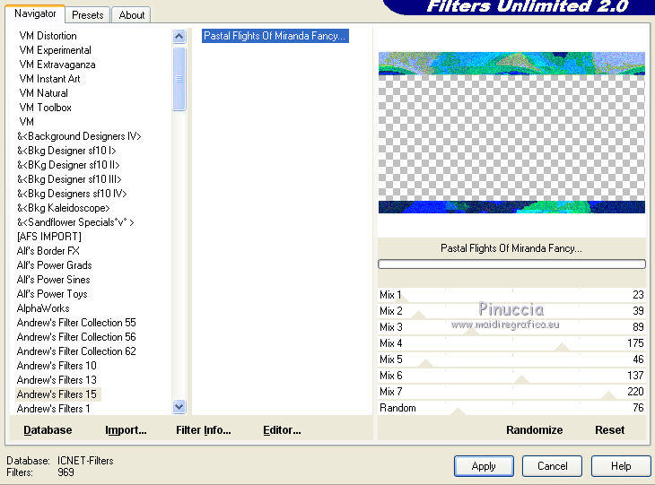 9. Effets>Modules Externes>Filters Unlimited 2.0 - Andrews Filters 15 - Pastal Flights Of Miranda Fancy