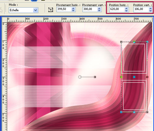 et placer Position horiz.: 628,00 et Position vert.: 106,00.