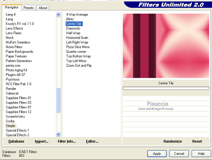 Effets>Modules Externes>Filters Unlimited 2.0 - Simple - Centre Tile.