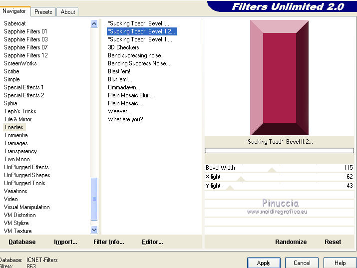 Effets>Modules Externes>Filters Unlimited 2.0 - Toadies - *Sucking Toad Bevel II.2.