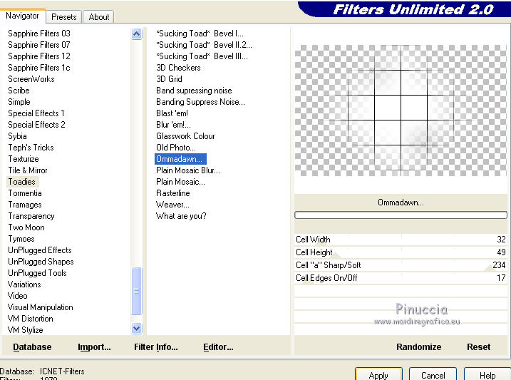 20. Effets>Modules Externes>Filters Unlimited 2.0 - Toadies - Ommadawn