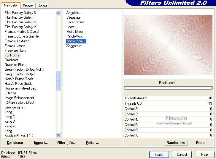 Filtres Factory Gallery, Funhouse et Italian Editors peuvent être utilisés seuls ou importés dans Filters Unlimited.