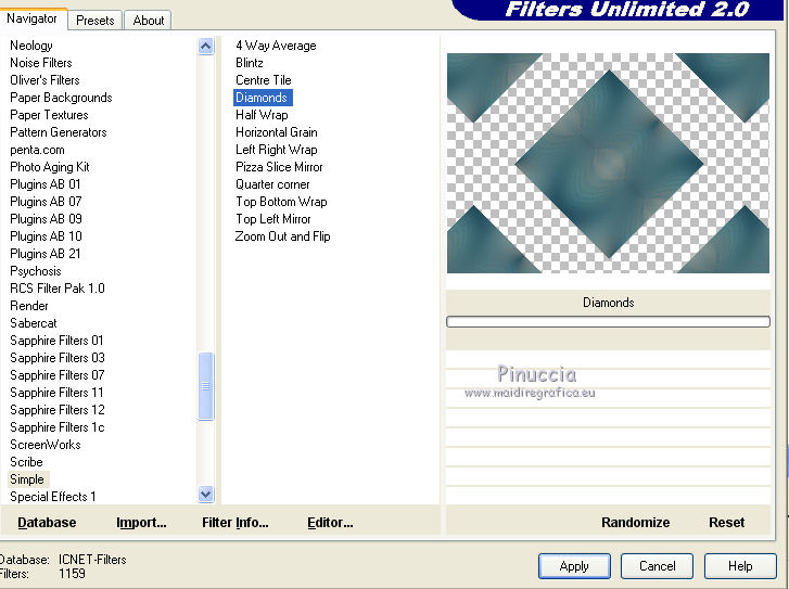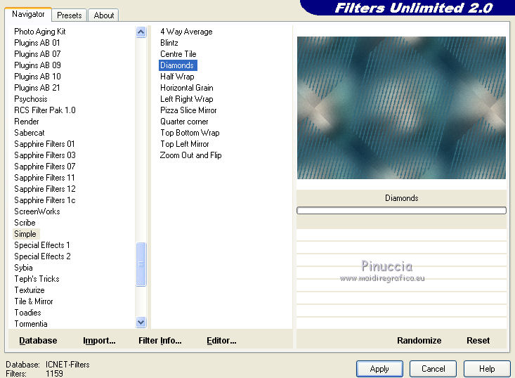 17. Effets>Modules Externes>Filters Unlimited 2.0 - Simple - Diamonds.