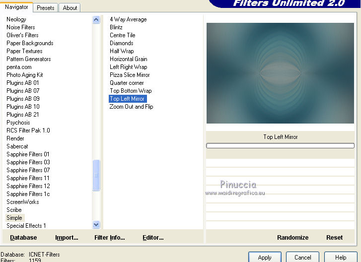 14. Effets>Modules Externes>Filters Unlimited 2.0 - Simple - Top Left Mirror