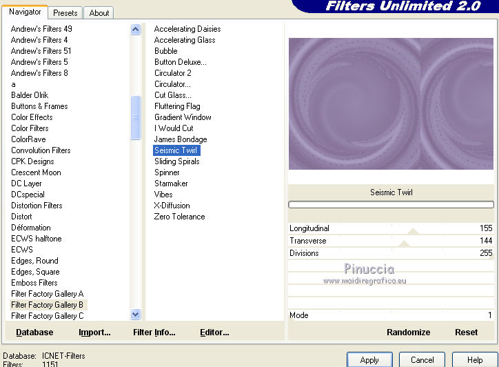 7. Effets>Modules Externes>Filters unlimited 2.0 - Filter Factory Gallery B - Seismic Twirl.
