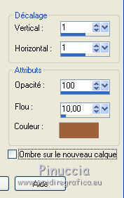 Effets>Effets 3D>Ombre portée, couleur d'avant plan #ac7b5d.