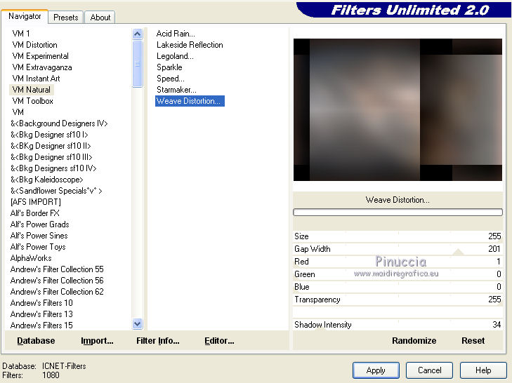 3. Effets>Modules Externes>Filters Unlimited 2.0 - VM Natural - Weave Distortion