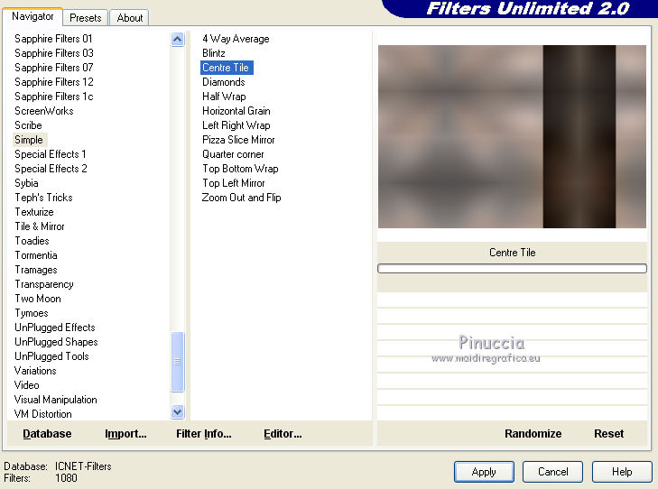 4. Effets>Modules Externes>Filters Unlimited 2.0 - Simple - Centre tile.