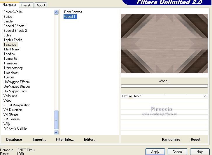12. Effets>Modules Externes>Filters Unlimited 2.0 - Texturizer - Wood1.