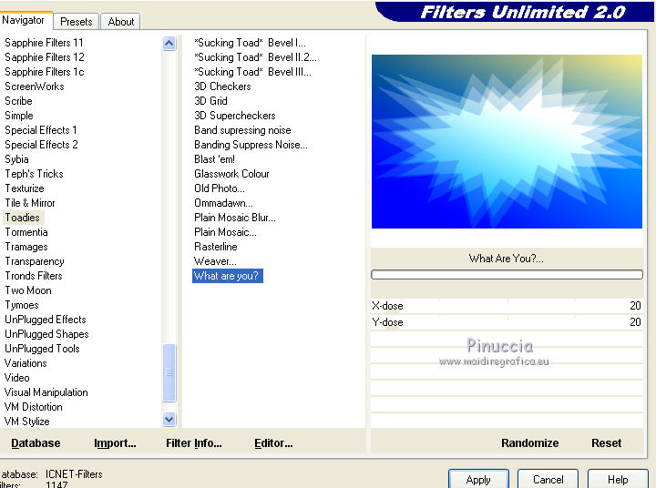 8. Effets>Modules Externes>Filters Unlimited 2.0 - Toadies - What are you