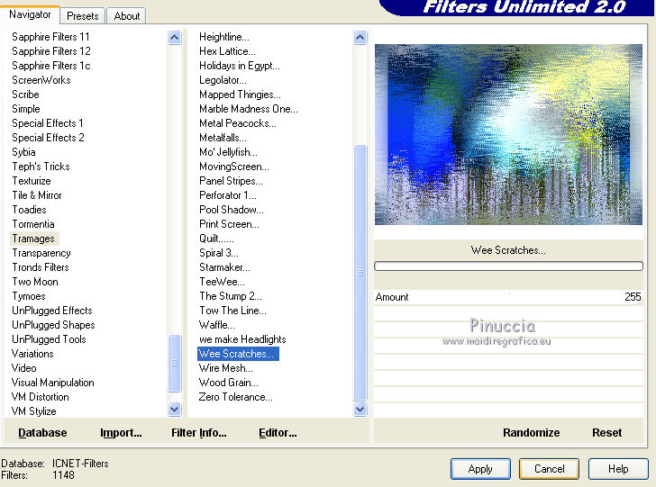 16. Effets>Modules Externes>Filters Unlimited 2.0 - Tramages - Wee Scratches.