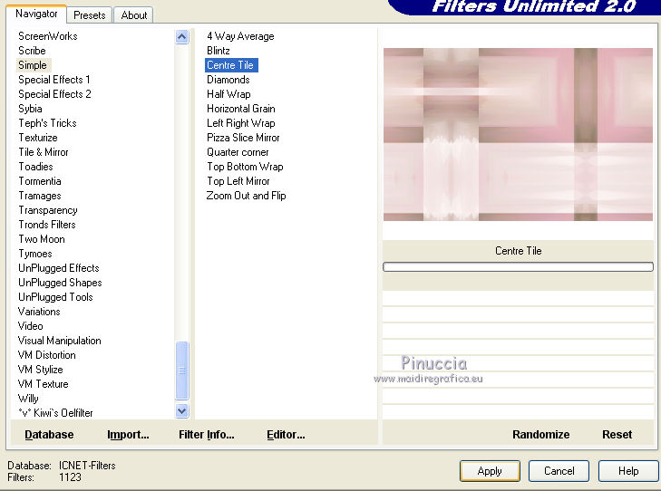 8. Effets>Modules Externes>Filters Unlimited 2.0 - Simple - Centre Tile.