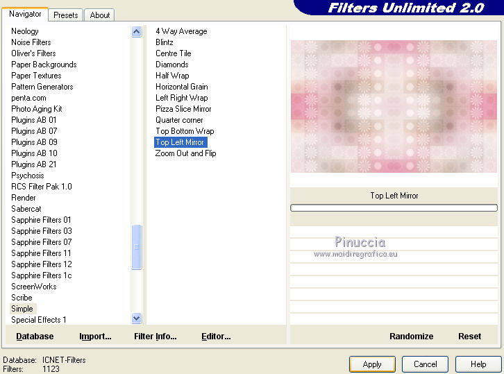 12. Effets>Modules Externes>Filters Unlimited 2.0 - Simple - Top Left Mirror