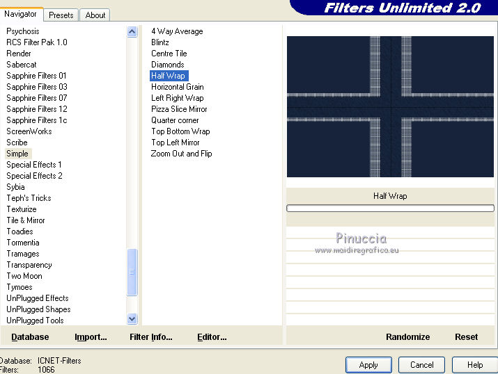 16. Effets>Modules Externes>Filters Unlimited 2.0 - Simple - Half Wrap.
