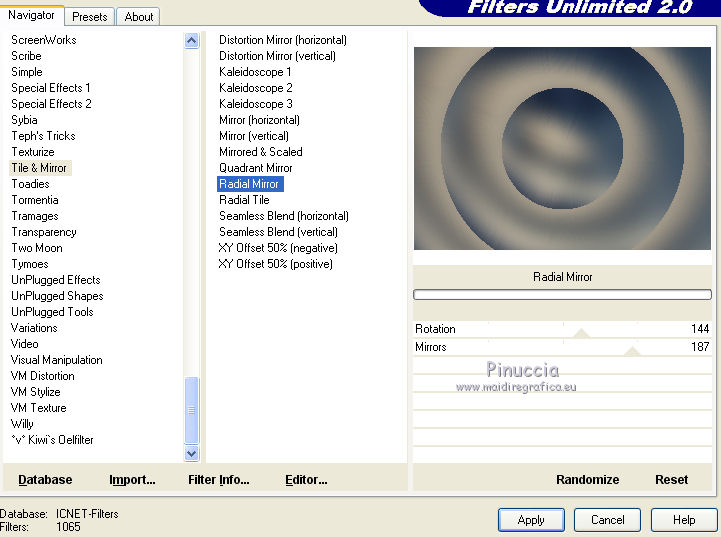 4. Effets>Modules Externes>Filters Unlimited 2.0 - Tile & Mirror - Radial Mirror.