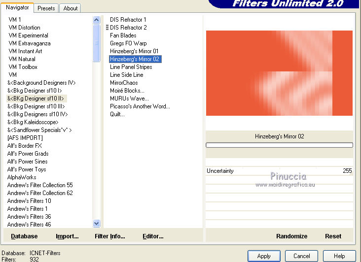 3. Effets>Modules Externes>Filters Unlimited 2.0 - &<Bkg Designer sf10II> - Hinzeberg's Mirror 02.