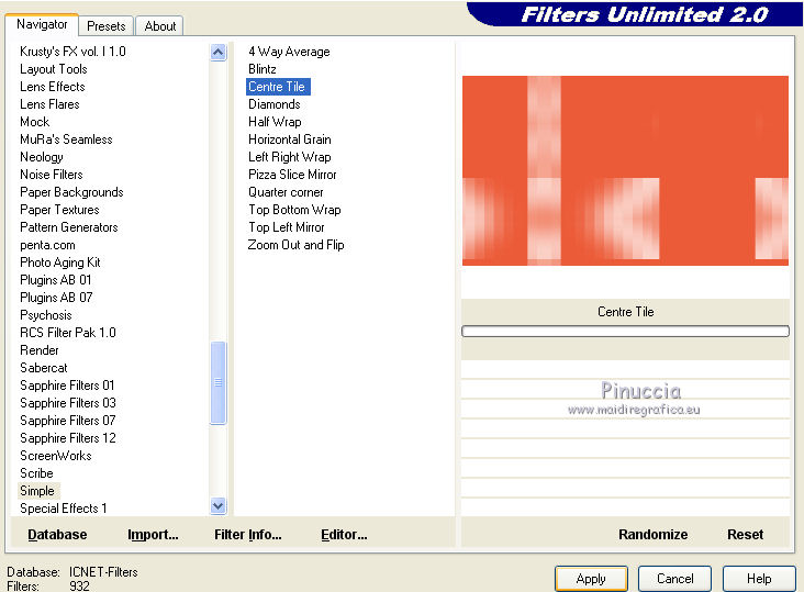 4. Effets>Modules Externes>Filters Unlimited 2.0 - Simple - Centre Tile.