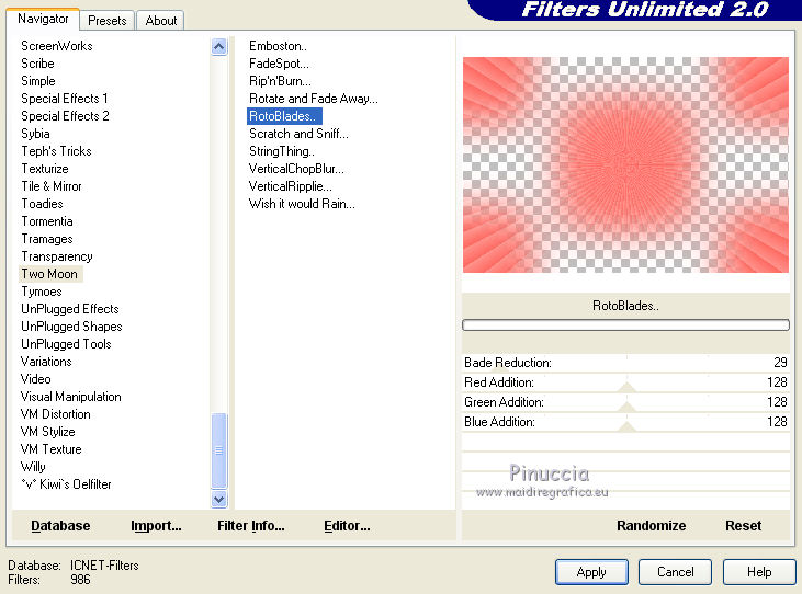 15. Effets>Modules Externes>Filters Unlimited 2.0 - Two Moon - RotoBlades...