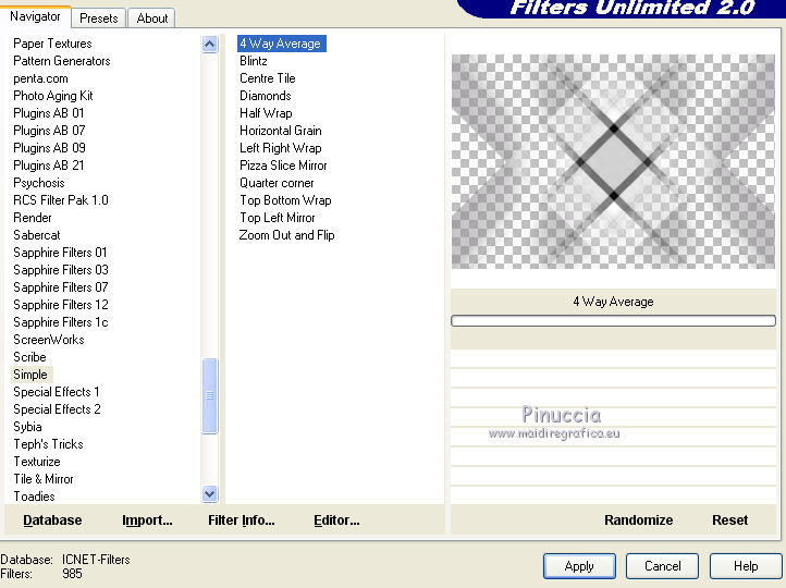 12. Effets>Modules Externes>Filters Unlimited 2.0 - Simple - 4 Way Average.