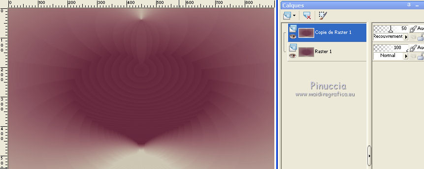 Placer le calque en mode Recouvrement et réduire l'opacité à 50%.