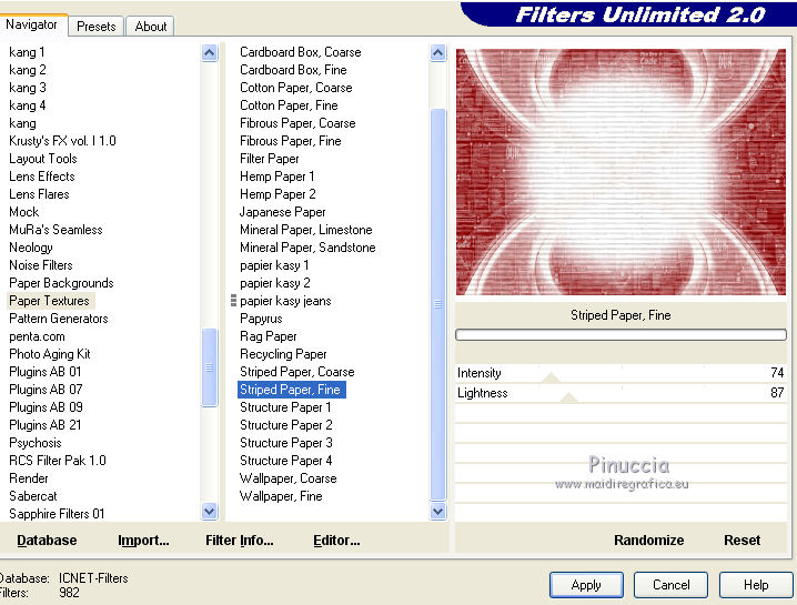 Effets>Modules Externes>Filters Unlimited 2.0 - Paper Texture - Striped Paper,Fine.
