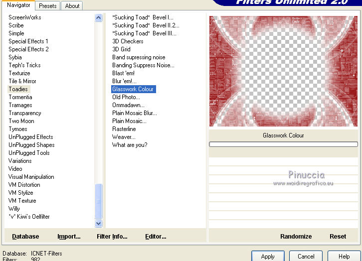 Effets>Modules Externes>Filters Unlimited 2.0 - Toadies - Glasswork Colour.