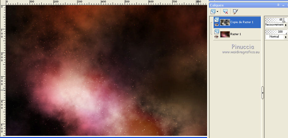 Placer le calque en mode Recouvrement et réduire l'opacité à 85%.