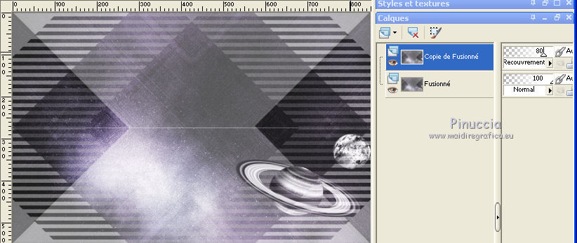 Placer le calque en mode Recouvrement et réduire l'opacité à 80%.