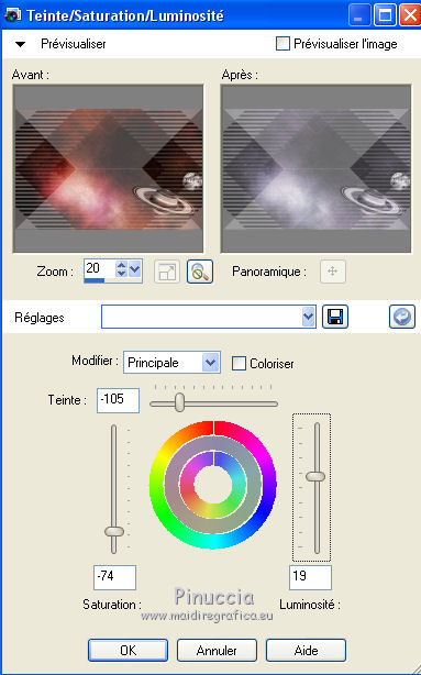 14. Réglage>Teinte et Saturation>Teinte/Saturation/Luminosité.