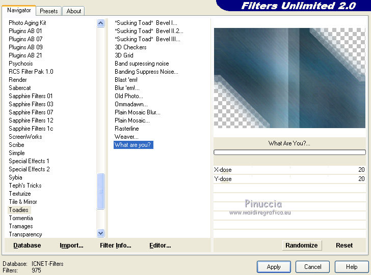 7. Effets>Modules Externes>Filters Unlimited 2.0 - Toadies - What are you.