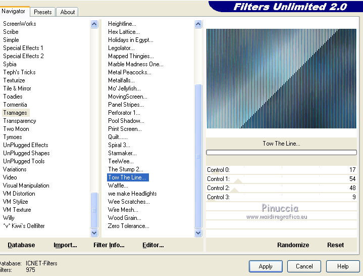 Effets>Modules Externes>Filters Unlimited 2.0 - Tramages - Tow the line.