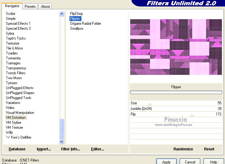 9. Effets>Modules Externes>Filters Unlimited 2.0 - VM Distortion - Flipper