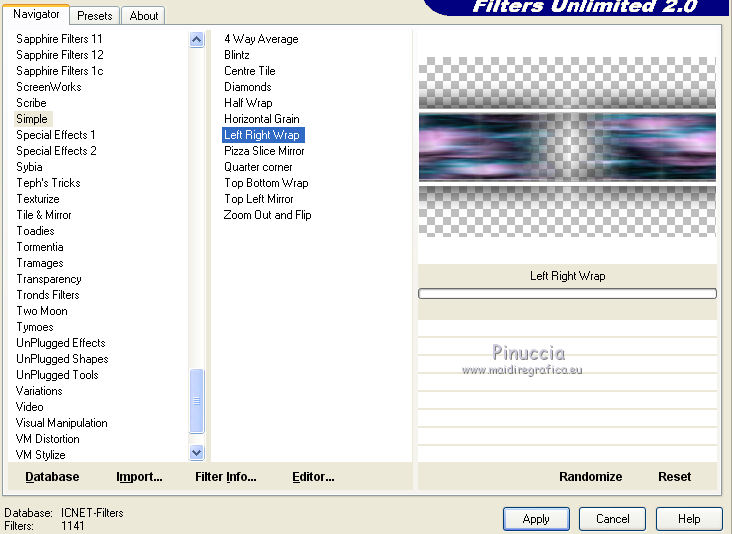 Filtres Graphics Plus, Simple et VM Distortion peuvent être utilisés seuls ou importés dans Filters Unlimited.