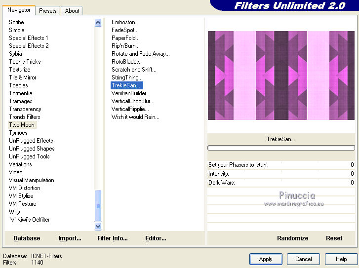 8. Effets>Modules Externes>Filters Unlimited 2.0 - Two Moon - TrekieSan (optionnel)