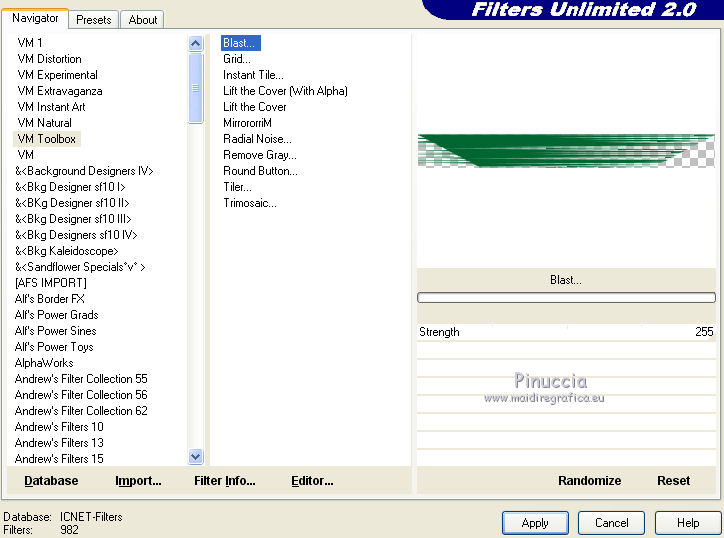 19. Effets>Modules Externes>Filters Unlimited 2.0 - VM Toolbox - Blast.