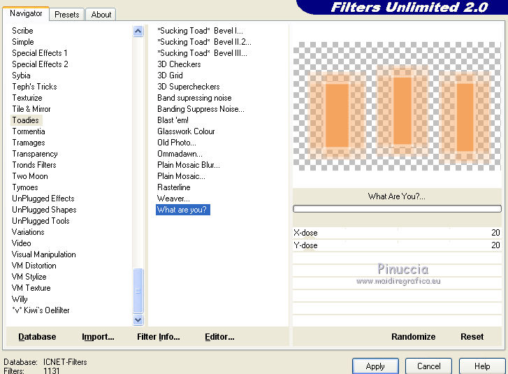 7. Effets>Modules Externes>Filters Unlimited 2.0 -Toadies - What are you