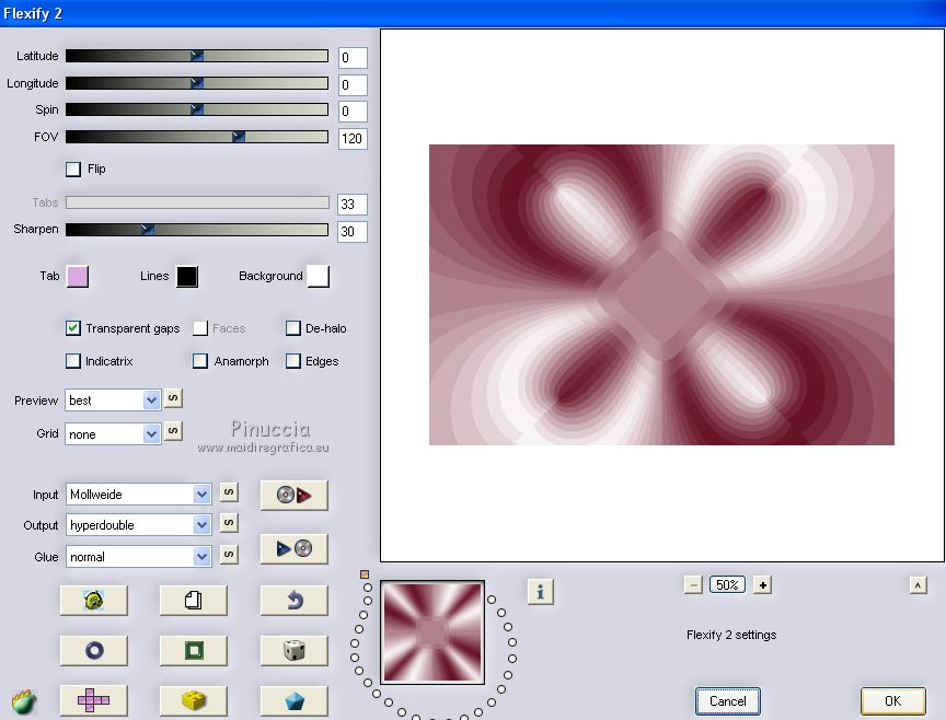 6. Effets>Effets de réflexion>Miroir rotatif, par défaut.