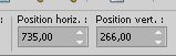 Placer Position horiz.: 735,00 (Position vert. est inchangé: 266,00).