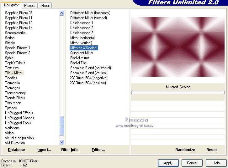 Effets>Modules Externes>Filters Unlimited 2.0 - Tile & Mirror - Mirrored & Scaled.