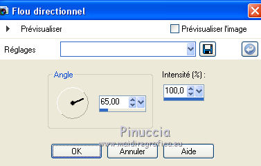 4. Réglage>Flou>Flou directionnel (ou Flou de mouvement) - 3 fois avec ces réglages.