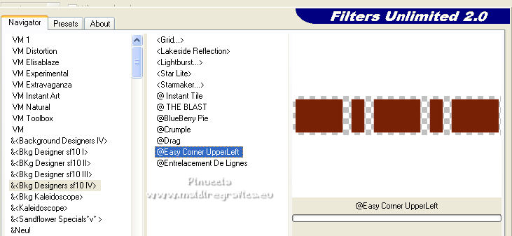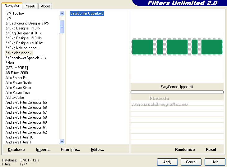 10. Effets>Modules Externes>Filters Unlimited 2.0 - &<Kaleidoscope> - EasyCorner UpperLeft.