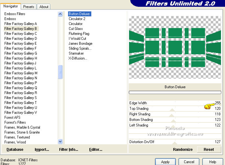 8. Effets>Modules Externes>Filters Unlimited 2.0 - Filter Factory Gallery B - Button Deluxe.